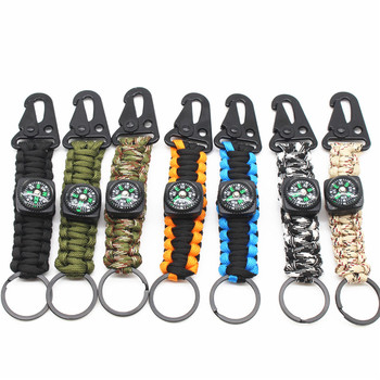 Mousqueton de Camping de randonnée, porte-clés de survie de paracorde d'aventure en plein air avec boussole